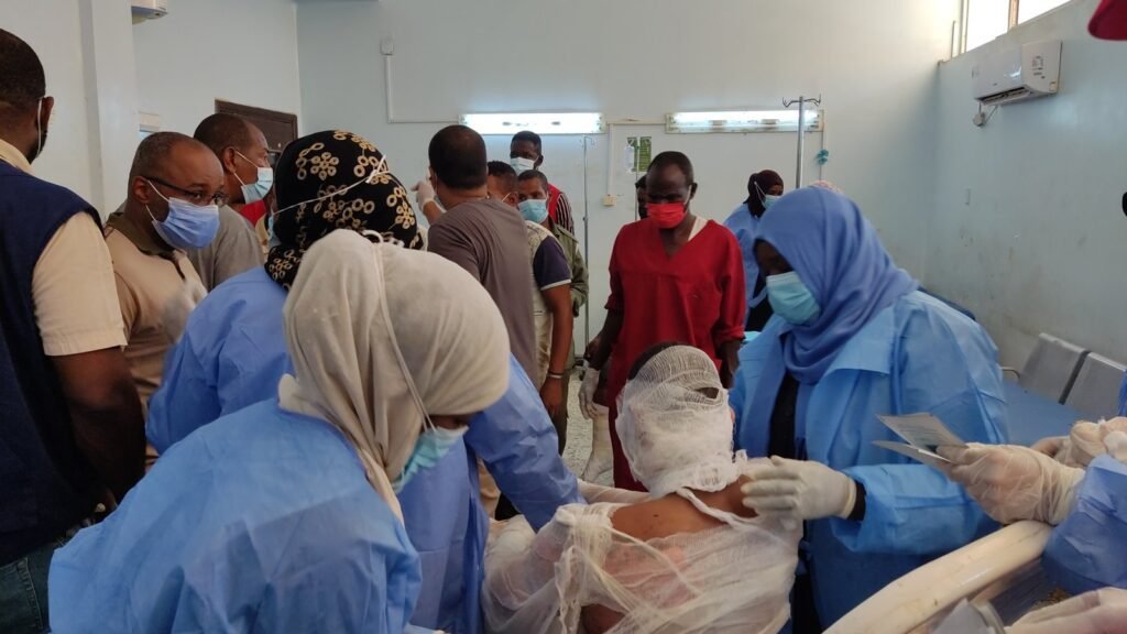 وبحسب الماهري شاركت فرق الهلال الأحمر والكشافة في تقديم الرعاية الصحية الأولية، كما بادرت الهيئة الطبية الدولية بإرسال فريق طبي شارك في أعمال الإسعافات الأولية وتجهيز الجرحى ليتم نقلهم إلى مستشفيات في شمال البلاد.
