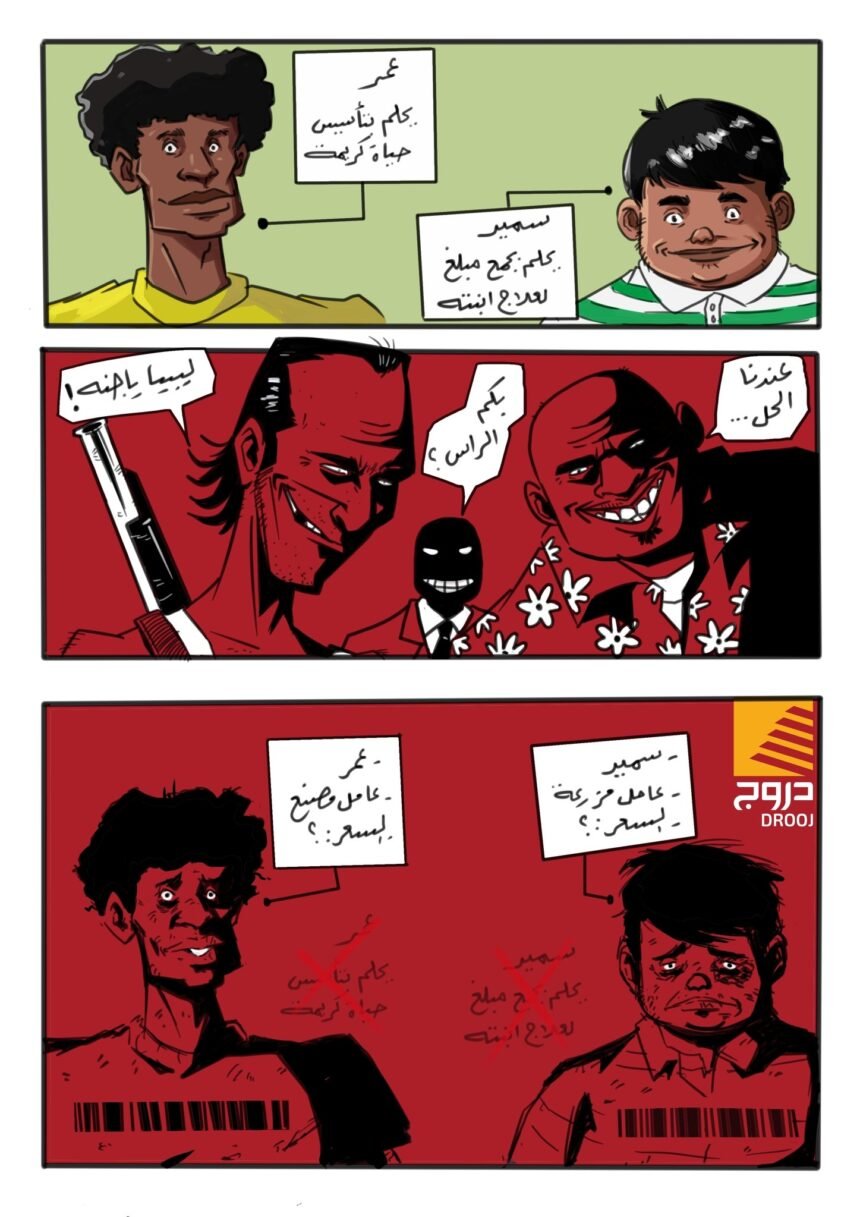 كوميك: تهريب البشر؛ عندما يصبح الإنسان سلعة.